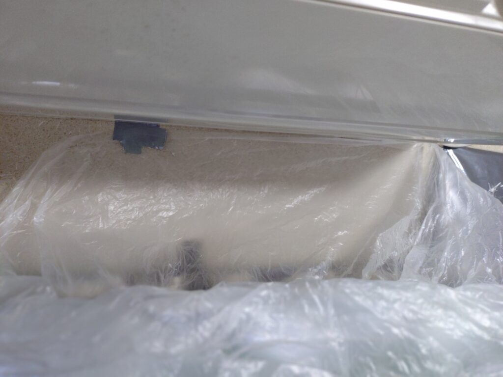 まずは、周囲を汚さないようにビニールでしっかり覆う。