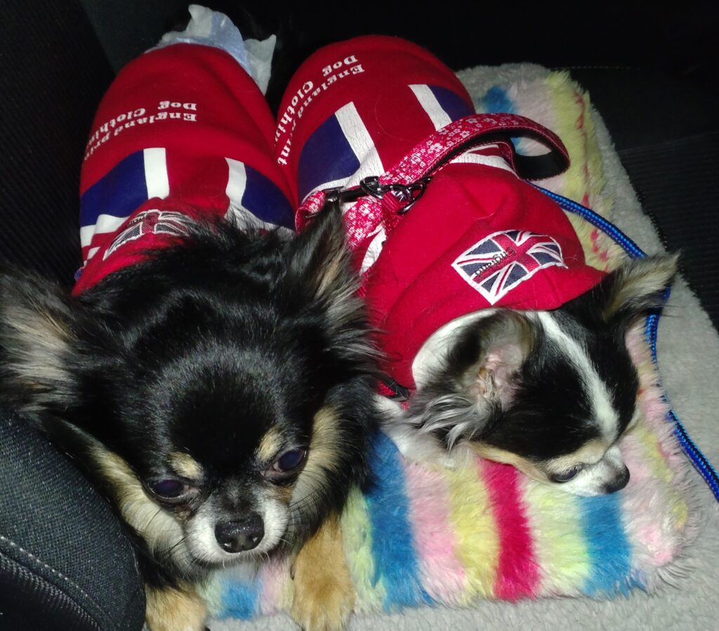 そして、右側の[小さなチワワ]は、もうすでに夢の中…💤 助手席の横で、こんなに安心して寝てくれる姿を見ると、運転もルンルン気分になります。